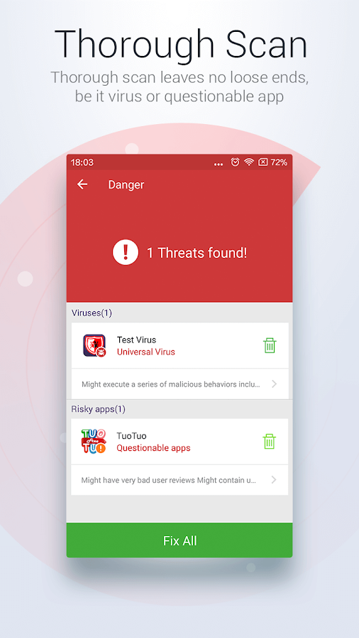 ►Professional engine: Professional search algorithm both on device and Cloud enables rapid scanning and in-depth virus detection.