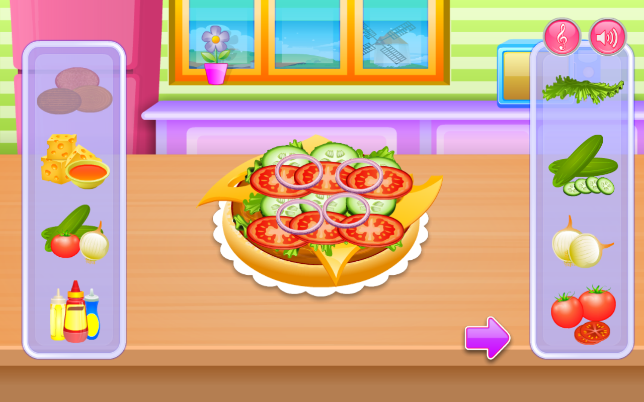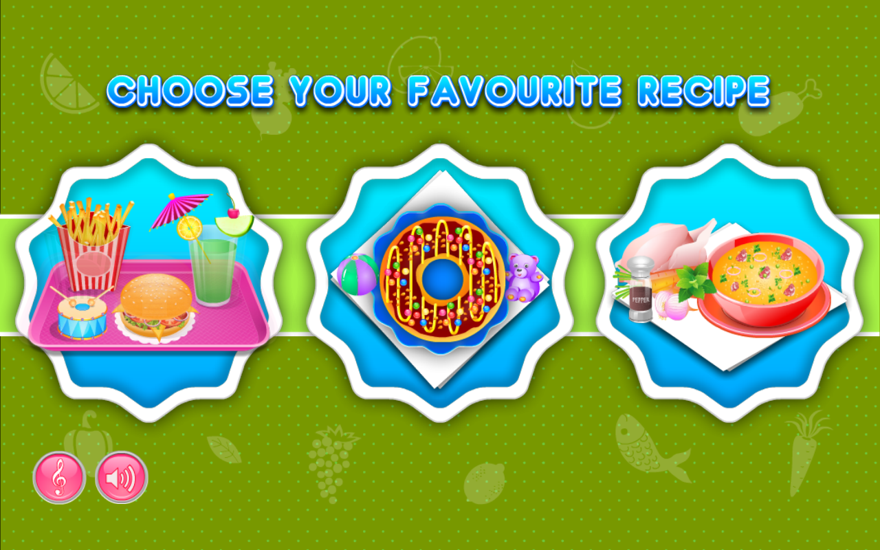 In this cooking game we have a couple of recipes for you. You can choose what to bake: fries and a hamburger, a donut or soup. The most of the dishes you can decorate them also with different toppings or toys.